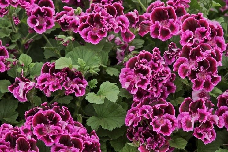 È una pianta erbacea sempreverde dal portamento eretto, può arrivare ai 150-170 cm di altezza. I fiori sono appariscenti e dai colori luminosi, vanno dal bianco al rosso, con le varie sfumature del rosa e del lilla, e sono vellutati, semplici o doppi. Le foglie si presentano leggermente arricciate e a contorno dentato e sono molto profumate. Si riproduce facilmente, come tutti i gerani, mediante la moltiplicazione per talea. La talea viene messa a radicare all'ombra in un terriccio ricco, da tenere umido. Preferibilmente a fine estate o in primavera, in modo che le nuove piantine trovino un clima accogliente.